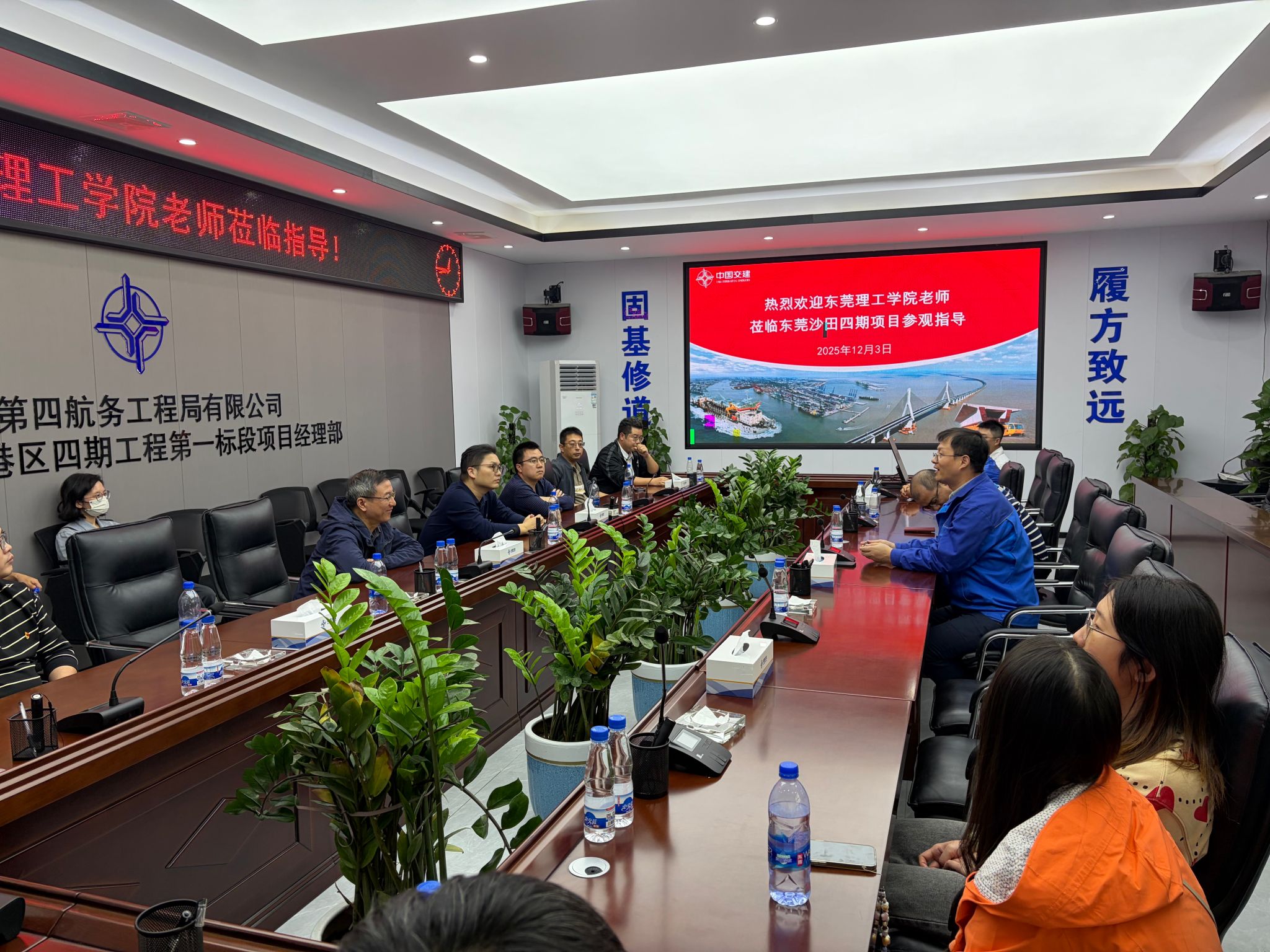 建筑类专业教师党支部与城市安全防灾应急实验室教师党支部联合赴东莞港沙田四期工程和狮子洋通道项目交流。本次活动由原港珠澳大桥管理局副局长余烈教授牵头组织,通过实地调研国家重点工程,双方就技术创新、人才培养等议题展开深入探讨。