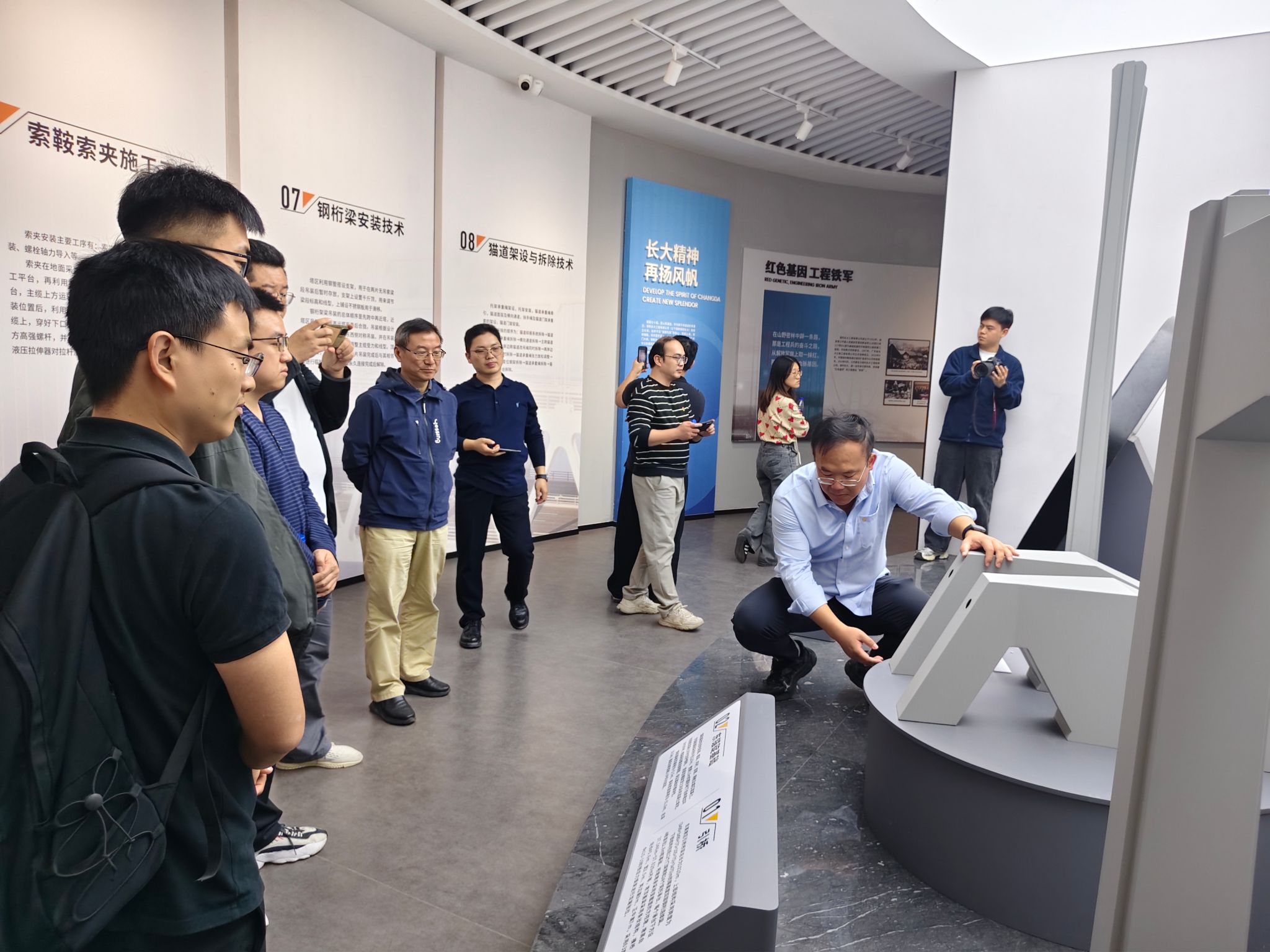 随后,支部党员抵达狮子洋通道项目现场。在保利长大工程有限公司工作人员的引导下,教师们参观了“狮子洋通道主桥工程智慧建造展馆”。项目部透露,该工程以主塔高342米、主缆直径1.5米等创下多项“世界之最”,其面临的台风频发区抗风设计、超大跨度悬索桥精准施工等挑战,为防灾减灾、结构工程等领域提供了前沿研究样本。