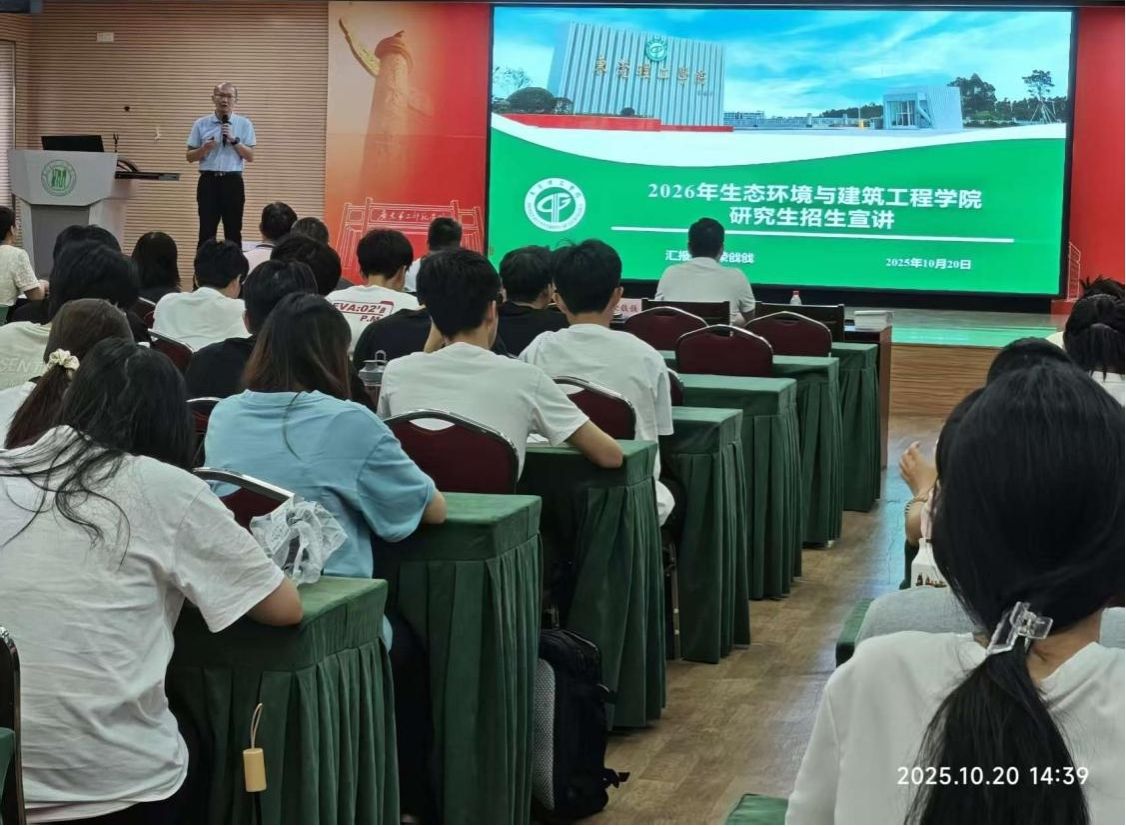 研究生招生宣讲”的专题报告。宣讲重点介绍了学院环境工程、土木工程、土木水利等学位点的培养特色与招生政策,并鼓励学生积极报考。