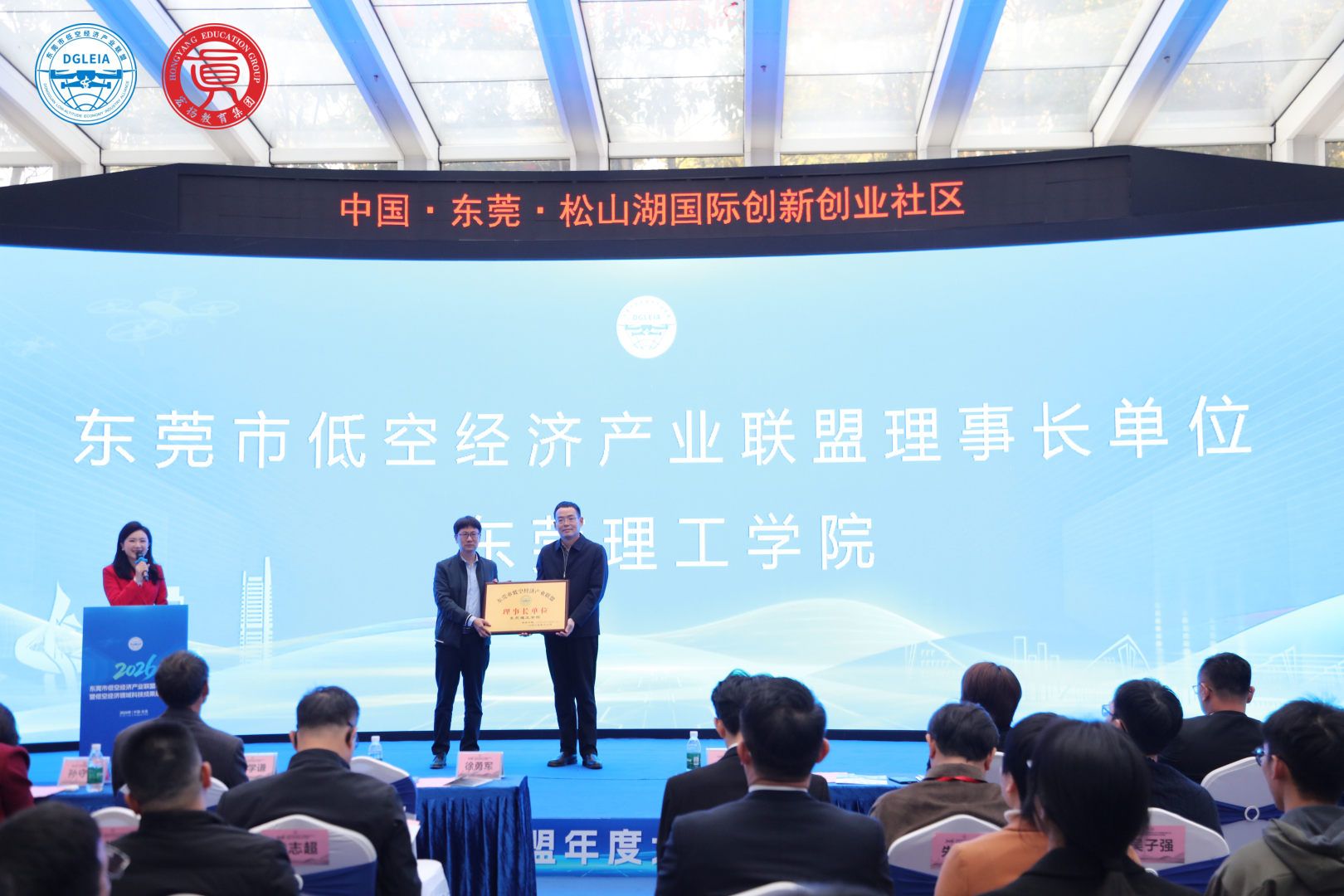 被授予“东莞市低空经济产业联盟理事长单位”。校党委委员、副校长徐勇军代表学校致辞。他表示,此次授牌是对学校服务区域产业发展能力的充分信任与认可,学校将切实履行理事长单位职责,充分发挥高校科研与人才优势,深度融入低空经济生态建设,推动“政产学研用”协同创新,为东莞打造“低空场景之城”贡献理工力量。