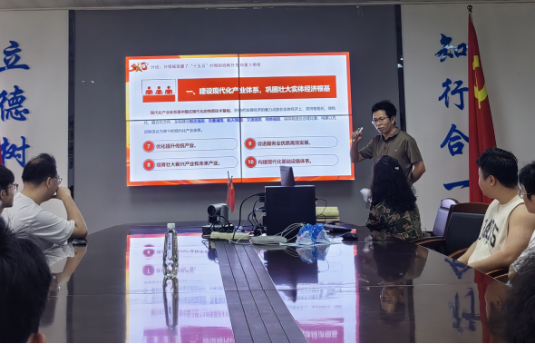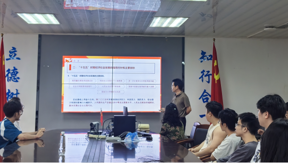 课堂上,兰善红教授围绕“十五五”规划建议的时代背景、核心要义、战略部署与青年使命四大维度,结合国家发展大势、高等教育使命与毕业生成长实际,进行系统阐释与深入解读。他指出,“十五五”时期是全面建设社会主义现代化国家、向第二个百年奋斗目标进军的关键五年,在中国式现代化进程中具有承前启后、夯实根基、开辟新局的重要战略地位。规划建议通篇贯穿高质量发展主题,聚焦发展新质生产力、构建新发展格局、建设现代化经济体系,明确了未来五年经济社会发展的七大主要目标与重点任务,为国家发展擘画了宏伟蓝图,也为青年一代成长成才、建功立业指明了方向。
