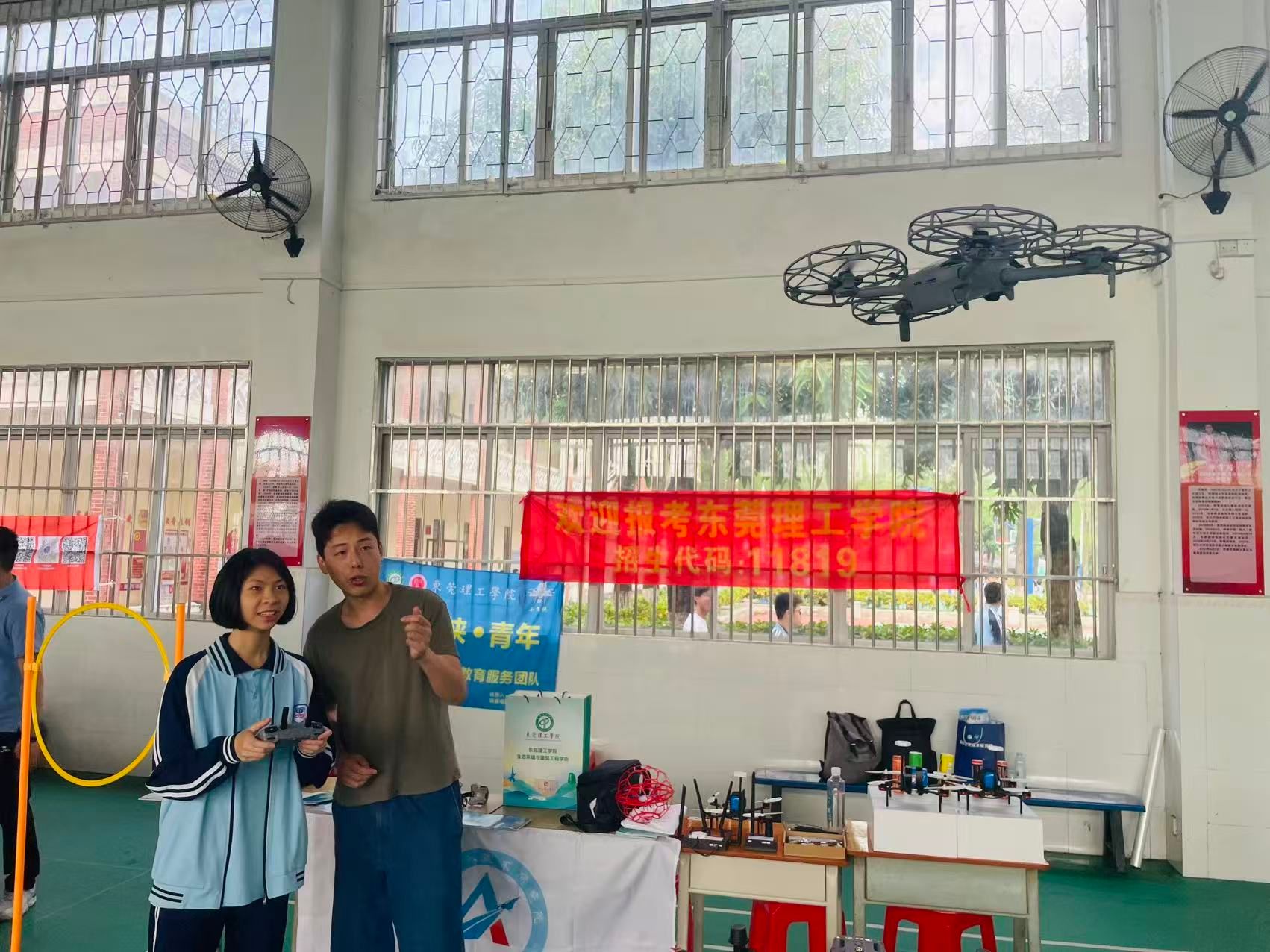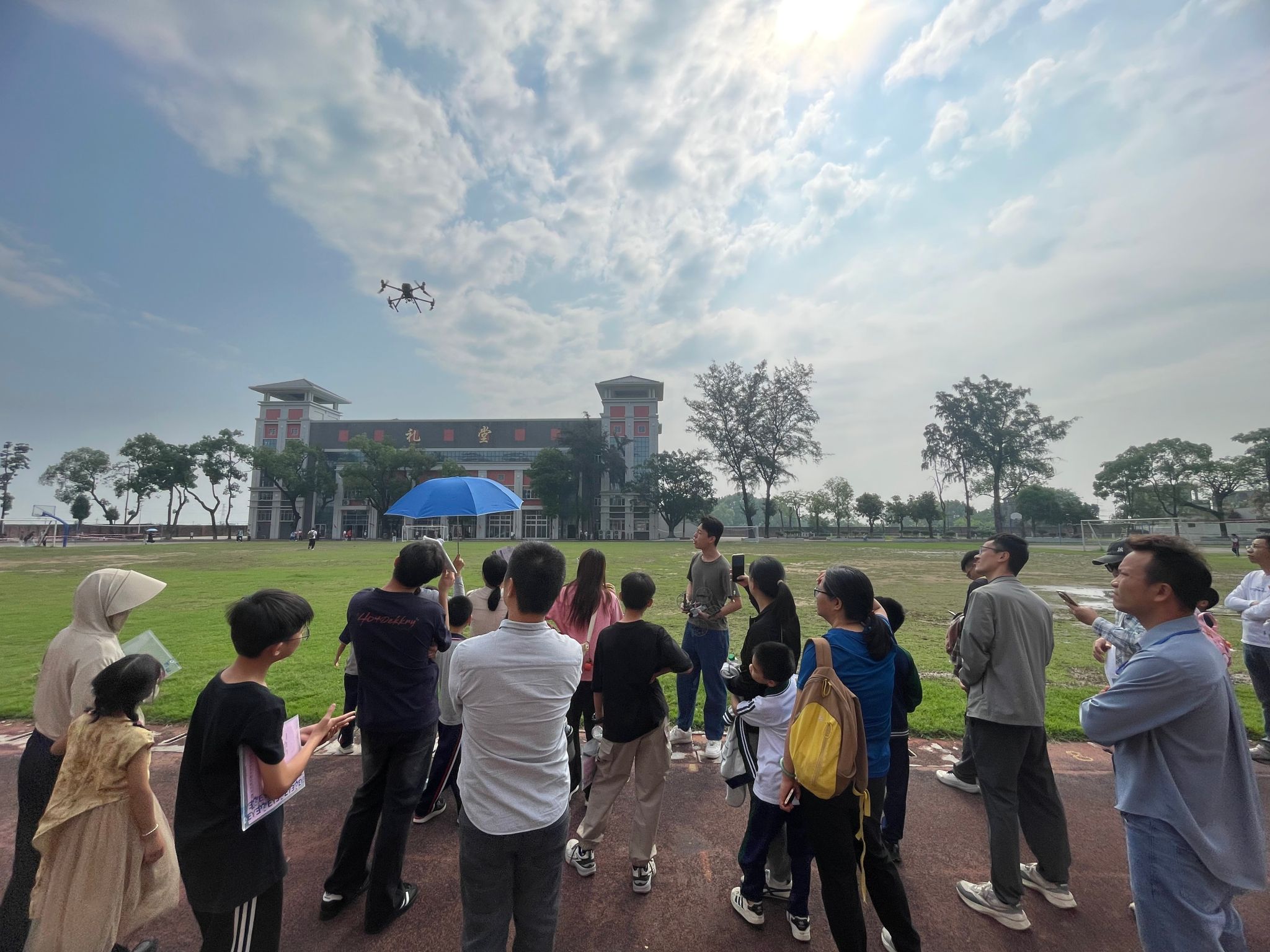 4月25日上午,我院招生宣传团队携国际空天技术研究院师生到访江门市开平第一中学,应邀参加由该校承办的2026年开平市中小学生信息科技创新大赛暨“小小科学家”科学实验活动,空天院曾志华老师为当地学子带来无人机技术现场教学和工业应用展示,在学科技术生动展示的互动加持下,家长学子对我校了解的热情持续高涨。